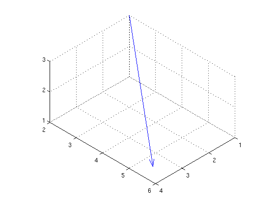 quiver3(1,2,3,3,4,-2) view([10 10 10]) daspect([1 1 1])