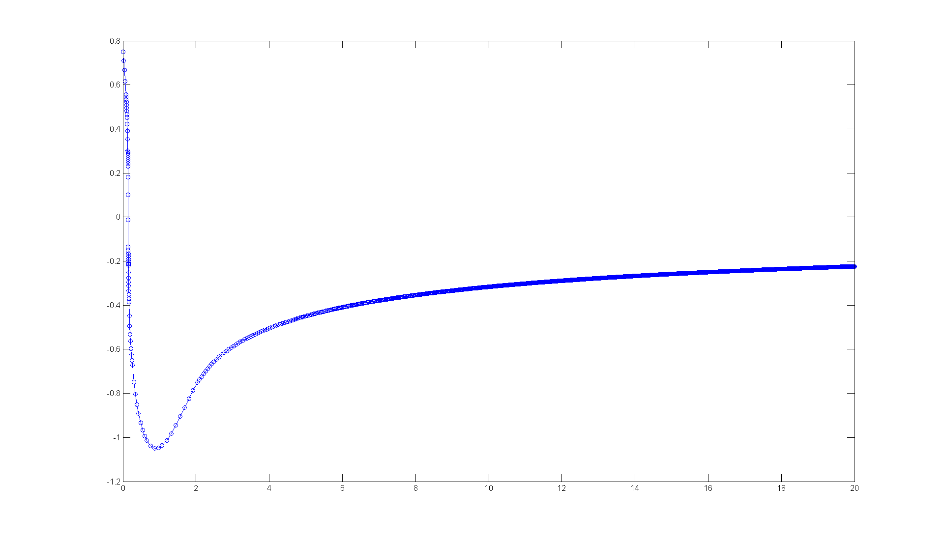 ode45(h, [0 20], 0.75)