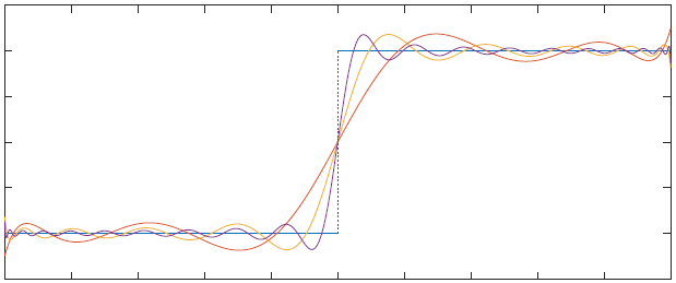 | Least squares approximation of sign(x) on [-1,1] with polynomials of degree 10,20,40 |